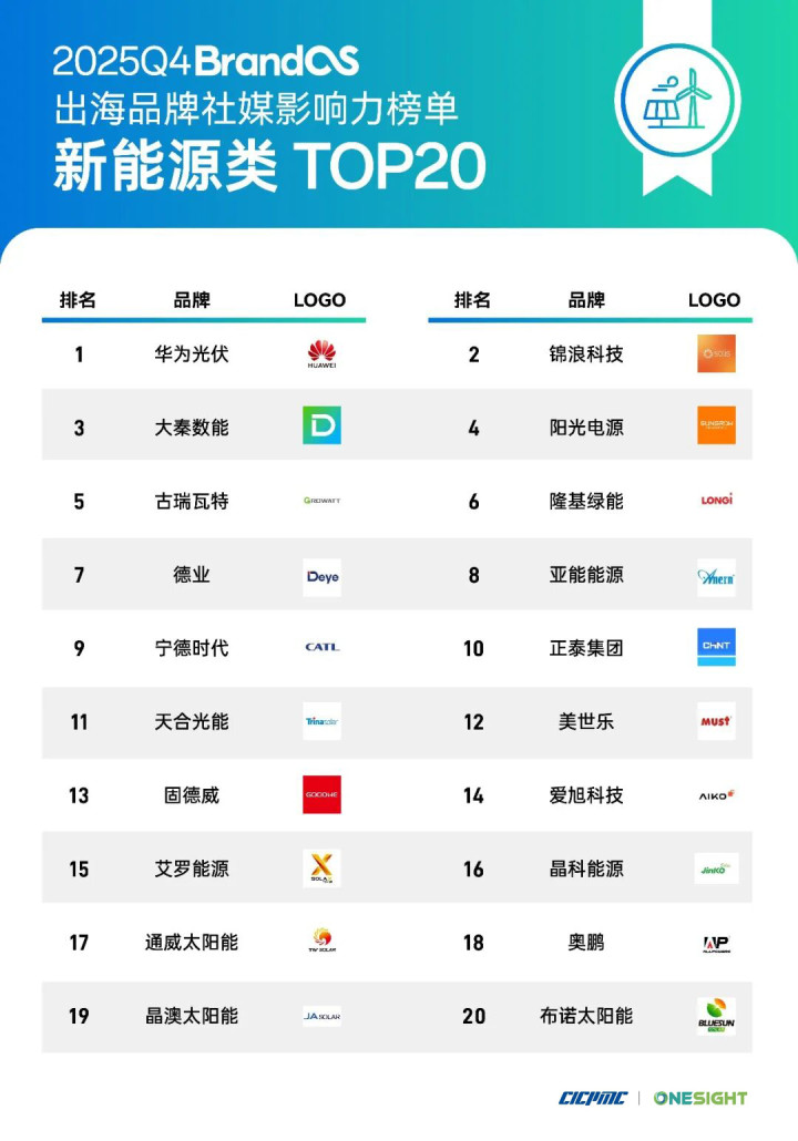 从 BrandOS 出海品牌社媒影响力榜单中不错看到一个显著信号:在新动力与光伏有关赛谈中,仍能合手续保合手国际社媒活跃度、询查度与品牌声量的企业,并非短期价钱战中最激进的一批,而是更早完成本事外显的一批。