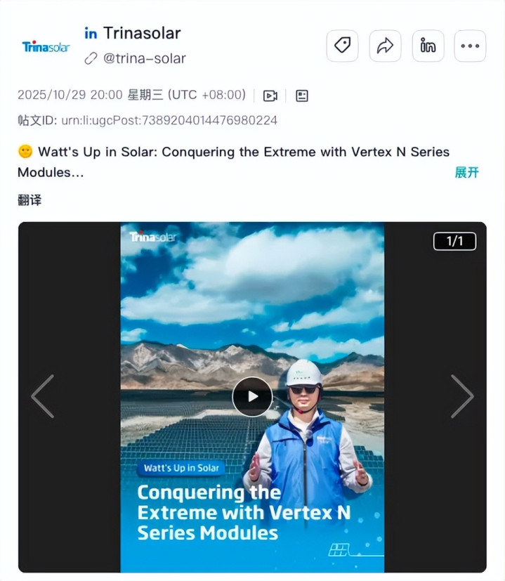 天合光能(Trina Solar)则平直走进真实光伏电站拍摄推行,在高海拔、强风、剧烈温差和强日照等极点环境下,展示其 TOPCon 技艺若何保合手分解发电本事。