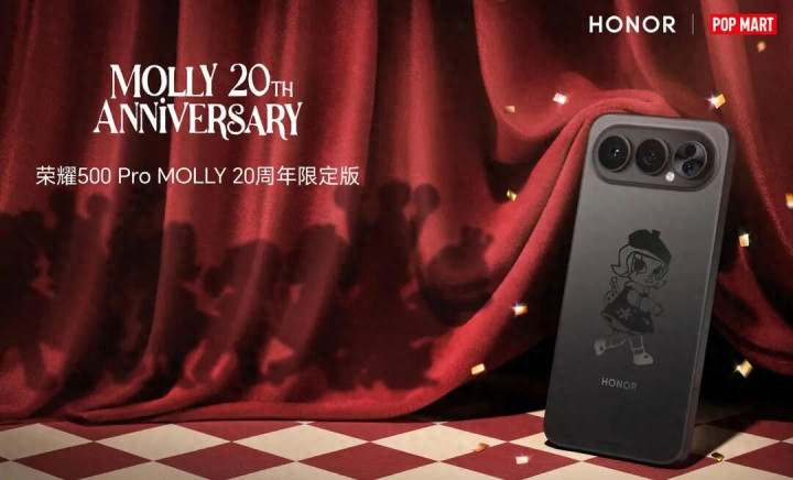 1 月 19 日,荣耀与泡泡玛特联结推出荣耀 500 Pro MOLLY 20 周年结果版。
