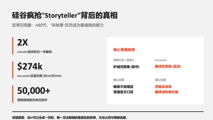 在AI批量分娩本体的期间,的确感成为稀缺资源。LinkedIn上'Storyteller'职位一年翻倍,年薪高达27.4万好意思元的背后,是企业对东谈主性化纠合的伏击需求。本文深远默契怎样通过故事构建信任,同期愚弄GEO技巧让本体被AI算法发现,达成东谈主机共赏的营销新范式。