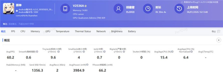 30分钟的《原神》跑图测试,Z11 Turbo的平均帧率达到了60.2fps,功耗则是3.98W,相同游戏经由也莫得出现掉帧卡顿的情况,抢庄牛牛保持着丝滑通顺。
