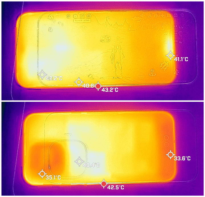 那发烧发达何如呢?咱们使用红外测温仪进行测试,可以看得手机温度最高照旧在边框的位置,达到了43.2℃。
