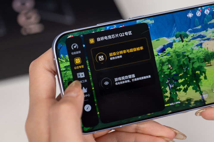 除了旗舰处治器,iQOO Z11 Turbo还配备iQOO自研电竞芯片Q2,粗略在游戏中终了超分、超帧,带来更通顺更精熟的游戏画质体验。