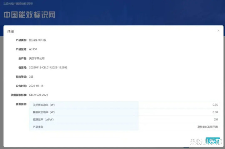 近期,一款型号为 A3350 的苹果家具(未发布)悄然现身中国能效标志中心数据库。