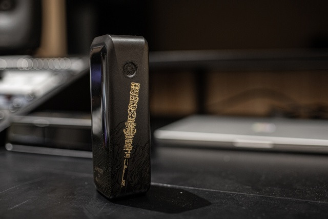 统共系列的产物都以黑金为主要配色,而且金色部分的图样如故立体的烫金工艺,使用来自心猿灵感的形象,搭配0.05mm的立体玄色的暗纹,杰出有质感。同期不管是彭胀坞如故充电宝,都带了一块显现屏,这么统共外不雅既有磨砂质感、又有高光亮面,搭配在通盘相等有高等感。