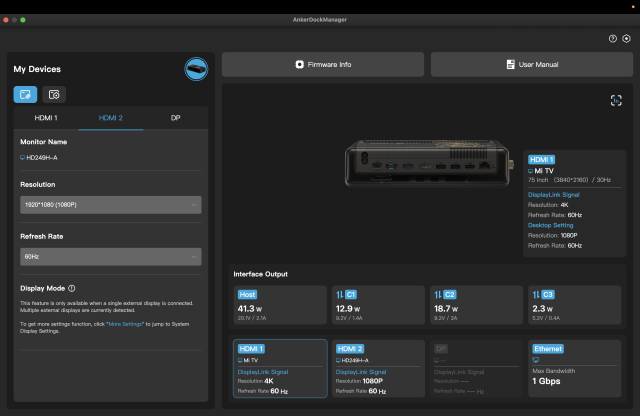 若是念念要了解更多的彭胀坞驱动数据与功能,不错在电脑高下载Anker Dock Manager,就不错及时监控更多的彭胀坞数据、使用屏幕投屏助手以及升级固件等等。