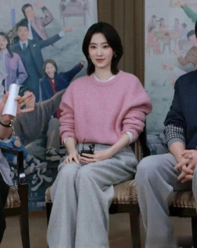 牛牛 张小斐短发大变样! 穿粉色毛衣+阔腿裤, 减龄又致密!