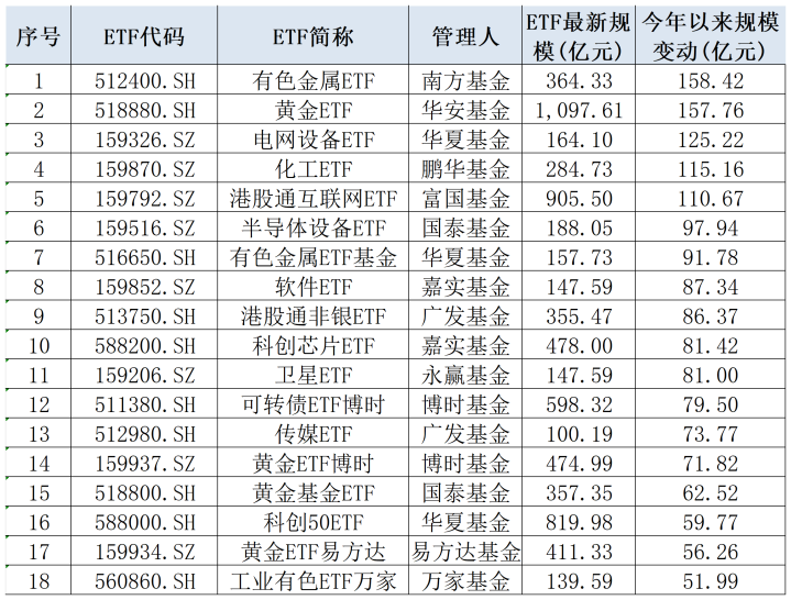 有色、黄金、电网等行业主题ETF逆势吸金,软件、科创芯片、半导体、卫星通讯等赛谈成为资金新标的。