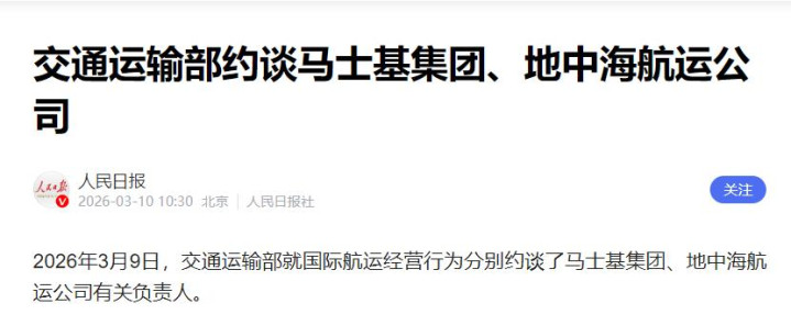 3月9日,中邦交通运输部先后召见马士基与MSC高管,公灵通报只说“就海外航运业务疏导”,不渲染、不放话。
