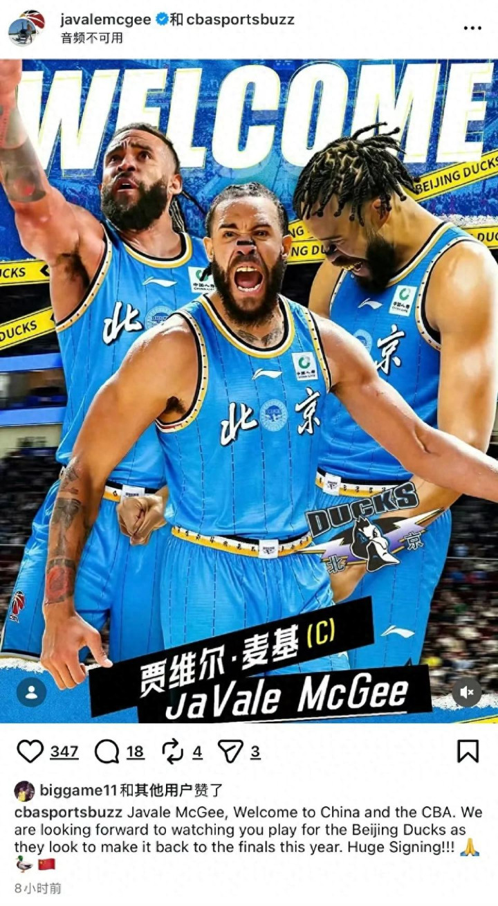 麦基自宣加盟北京男篮