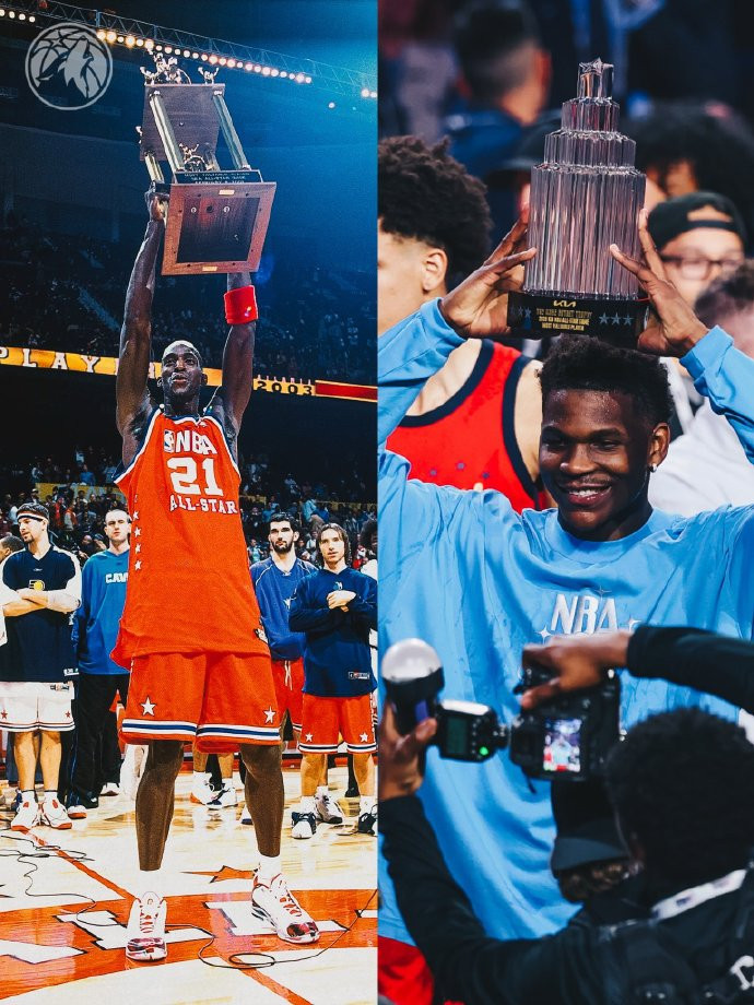 爱德华兹不仅拿到了活命首个全明星MVP,而且也成为加内特之后,丛林狼队史第二位拿到全明星MVP的球员。2003年全明星,年青的加内特也拿到过MVP奖杯。关于一样还相配年青的爱德华兹来说,全明星MVP应该亦然他活命于今最首要的个东说念主奖项了,但这显然还远远不够,因为爱德华兹的想象应该是旧例赛MVP和总决赛MVP。