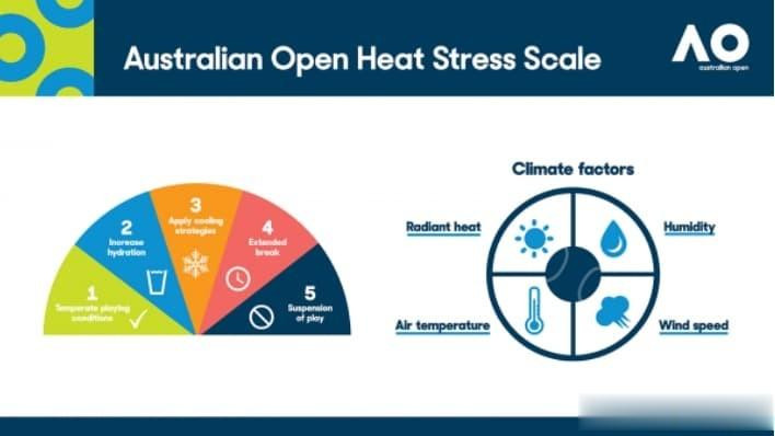 澳大利亚网球公开赛为2019年的比赛引入了一项极点高温计策-“AO热应激量表”。
