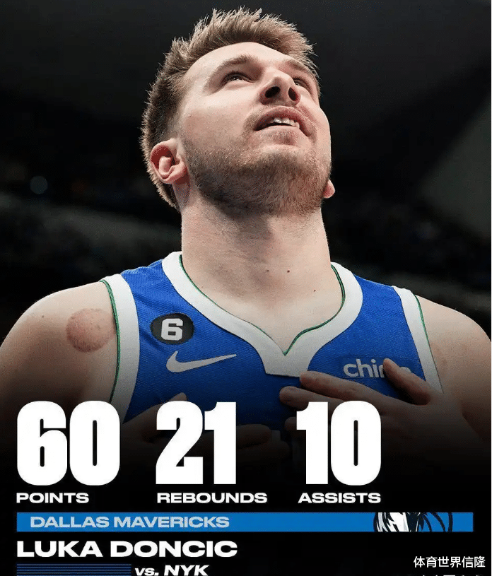 东契奇成为了第二位砍下60+得分三双的球员,亦然第一位同期砍下60+得分20+篮板三双的球员。