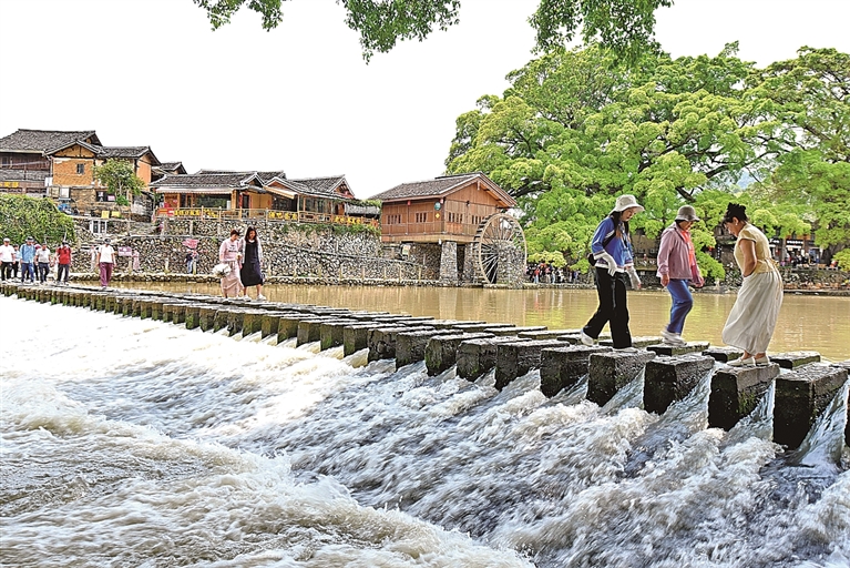 搭客在福建漳州南靖县梅林镇云水谣古镇参不雅游览。新华社发