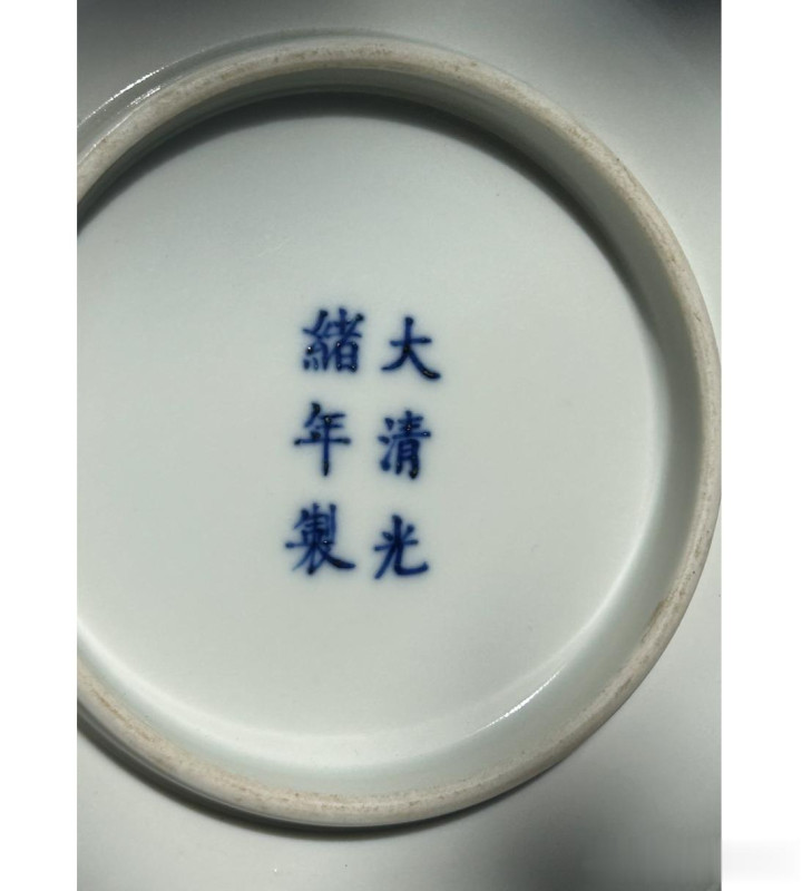 最为要道之证,见于盘底。足迹修削工致,中心青花书“大清光绪年制”六字双行楷书款。字体工致娟秀,笔锋明晰,青花发色千里稳,长远胎骨。此模范官窑款识,恰是本品期间与等第的最径直、最泰斗的注脚,宣告其降生于十九世纪末的光绪朝景德镇御窑厂。