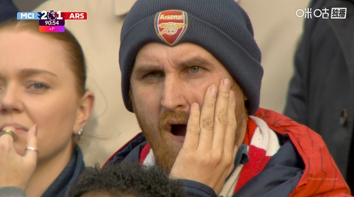 牛牛游戏 枪迷面目be like? 枪手补时仍过期, 镜头切给看台阿森纳球迷