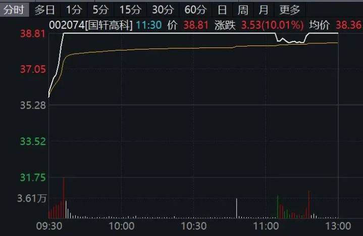 新能源产业早间集体走强,电板标的领涨,板块指数盘中放量大涨逾5%,半日成交超昨日全天成交。力佳科技涉及30%涨停,信宇东谈主仅约8分钟直线20%涨停,国轩高科(002074)也仅约6分钟涨停。
