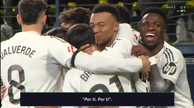 据转播方Movistar的镜头纪录,姆巴佩在打进这粒勺子点球后专诚拥抱并亲吻了队友布拉欣·迪亚斯,并向后者说:“(进球是)为了你,为了你。”
