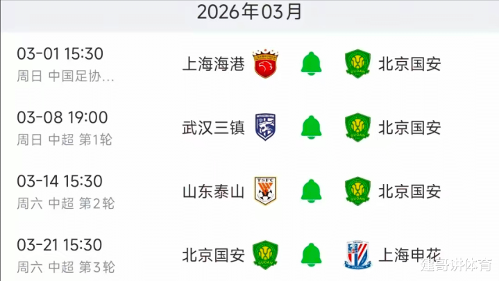 北京技艺2月16日,在足协公布了26赛季的中超赛程后,北京国安的赛程,也让许多北京媒体和球迷以为是最近几年最难的开局,因为足协让北京国何在联赛开局,就接连去踢旧年在中超排行前5的球队。