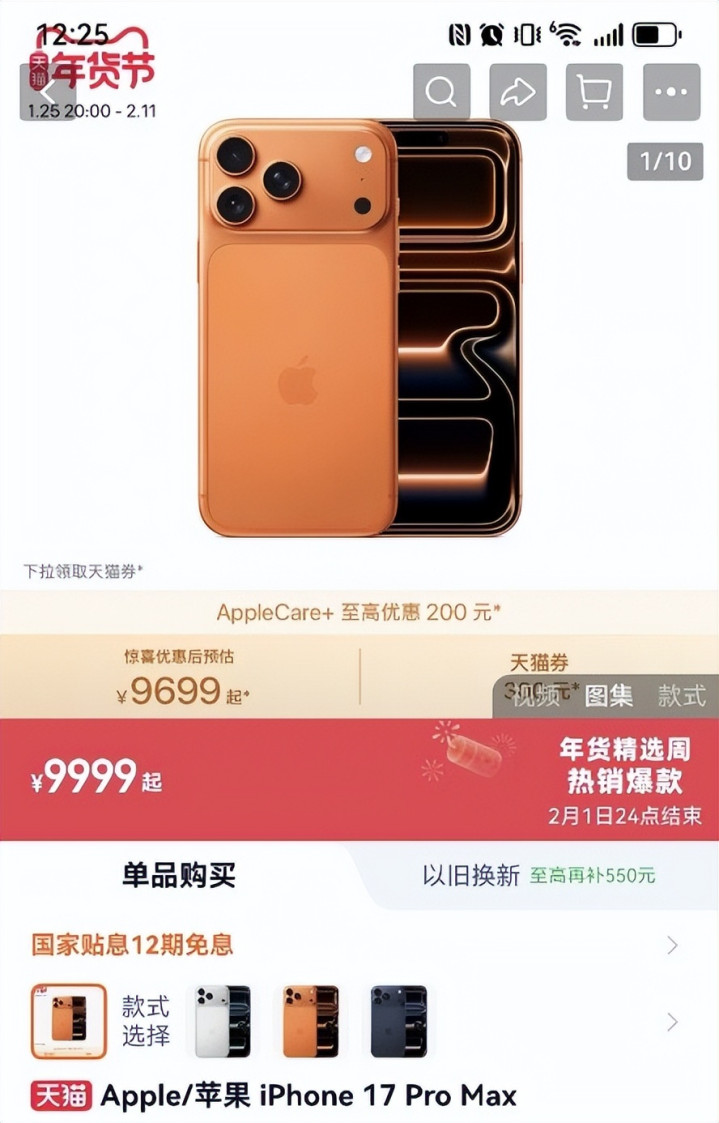 在高端机型方面,iPhone 17 Pro在天猫可享300元优惠券,凯旋价为8699元,以旧换新最高补贴550元;京东在提供300元优惠券的同期,抢庄牛牛以旧换新补贴最高可达1000元,补贴后凯旋价7699元起。iPhone 17 Pro Max的对比更为明显:两边均提供300元优惠券,但京东以旧换新补贴高达1100元,是天猫550元补贴的两倍。