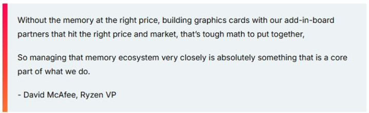 McAfee示意AMD多年以来竭力于于和主要DRAM制造商保抓计谋互助,以确保不错得回满盈的DRAM供应,然则关于将来的走势尚无法预见。要是莫得价钱适应的内存,念念要和板卡厂商互助打造出定位精确、订价合理的显卡,牛牛游戏这笔资本账将很难算得昭彰。因此严实把控内存生态系统将是AMD最中枢的责任之一,但愿尽量把加价完了在合理鸿沟之内。