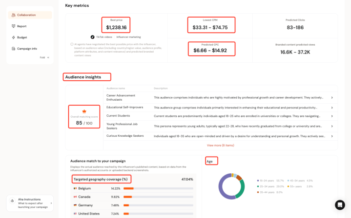 Aha带来的不仅是单次着力擢升,更是组织智商的数字化千里淀。越用越懂客户,品牌在平台上的每一次取舍,举例取舍或圮绝某个达东说念主、审稿偏好等都会被纪录并结构化,持续测验属于每个品牌的投放模子,让下一次匹配愈加精确。