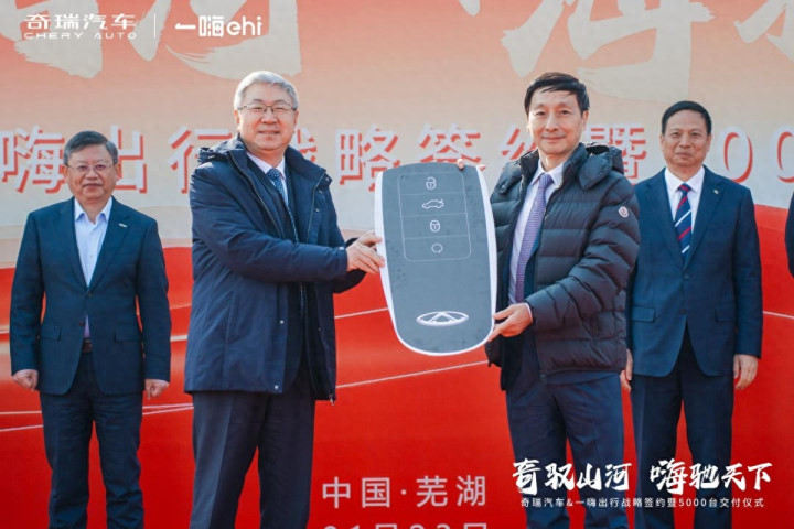 1 月23 日,“奇驭江山·嗨驰宇宙”奇瑞汽车&一嗨出行政策签约暨5000台新车请托典礼在安徽芜湖举行。在现场客东说念主的见证下,奇瑞汽车股份有限公司董事长尹同跃,向一嗨出行首创东说念主、董事长兼CEO 章瑞平请托钥匙。这象征着两家行业领军企业继2025 岁首次合作后,进一步开启深化政策合作、共创智谋出行更生态的新阶段。这亦然奇瑞范围最大的单次新车集聚请托。