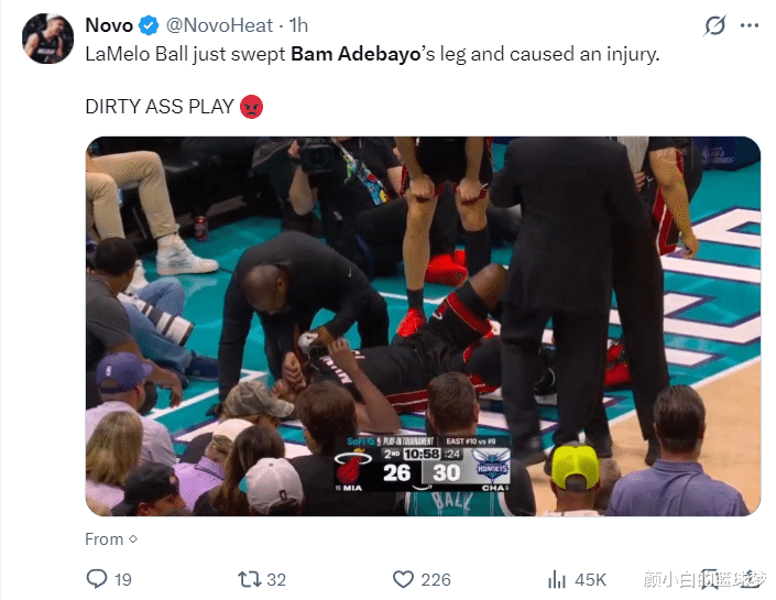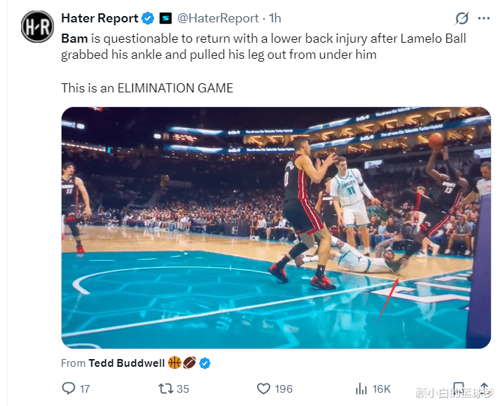 这场比赛相等热烈,在第二节就发生了极其令东谈主震怒的一幕,拉梅洛-鲍尔在我方回击倒地后拉拽了阿德巴约的脚后跟,让阿德巴约失去均衡,腰背部径直着地,热巴痛的在地上呻吟。